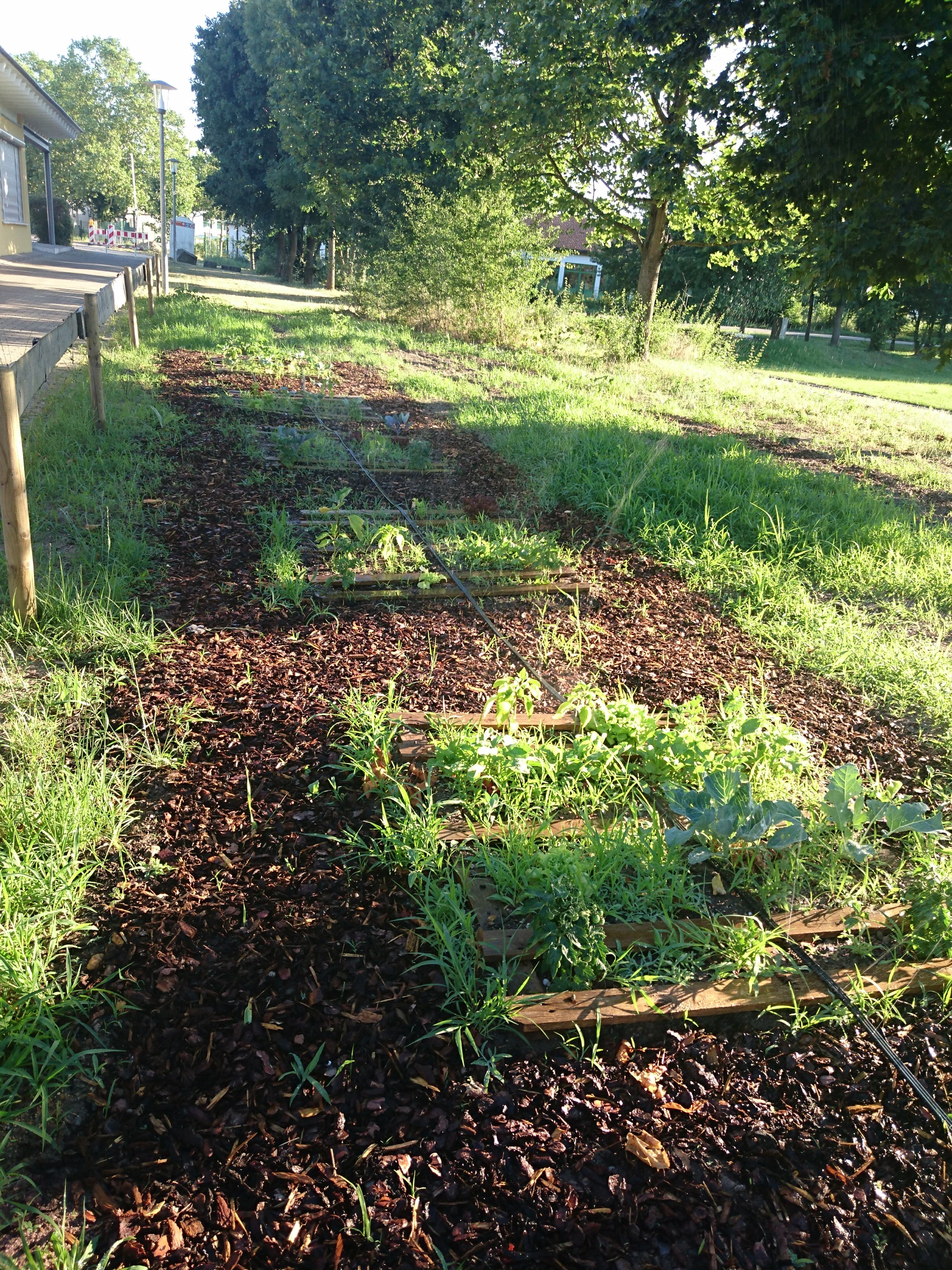 Da uns das ständige Schleppen von Gießkannen ziemlich genervt hat, habe ich in meinem Gartenschuppen zu Hause ein bißchen durchgeschaut und einen Berieselungsschlauch gefunden, der sein Dasein im Regal fristet.